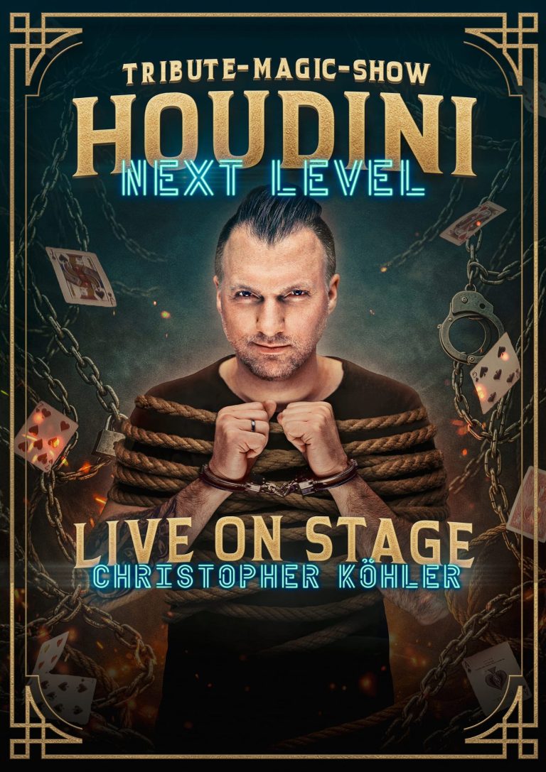 Mit „Houdini – Next Level“ feiert ein völlig neues Live-Event seine Premiere: eine Tribute Magic-Show, die nicht nur zurückblickt, sondern Houdinis Vermächtnis kompromisslos in die Gegenwart katapultiert.